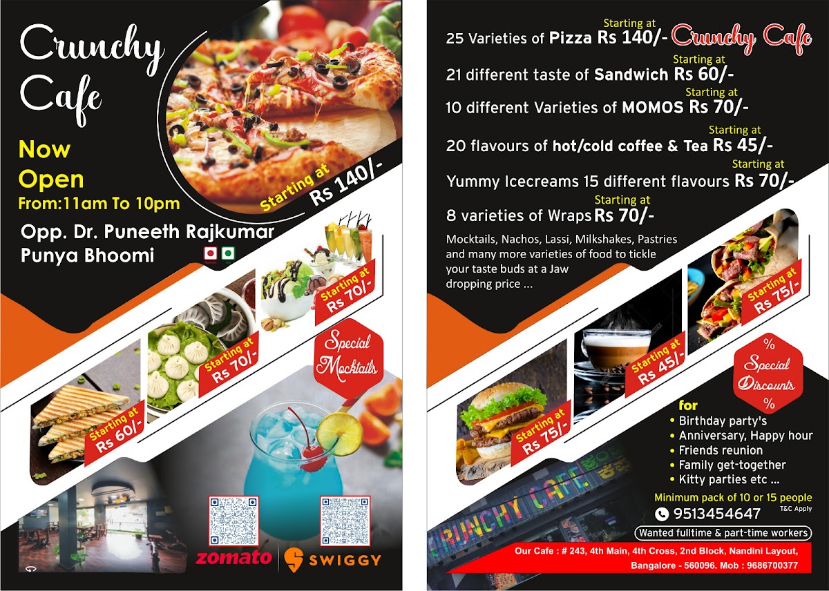 Discover the culinary delights at CRUNCHY CAFE (Nandini Layout), located in the heart of Bengaluru. This cafe boasts an enticing menu, perfect for food enthusiasts seeking both flavors and authenticity.